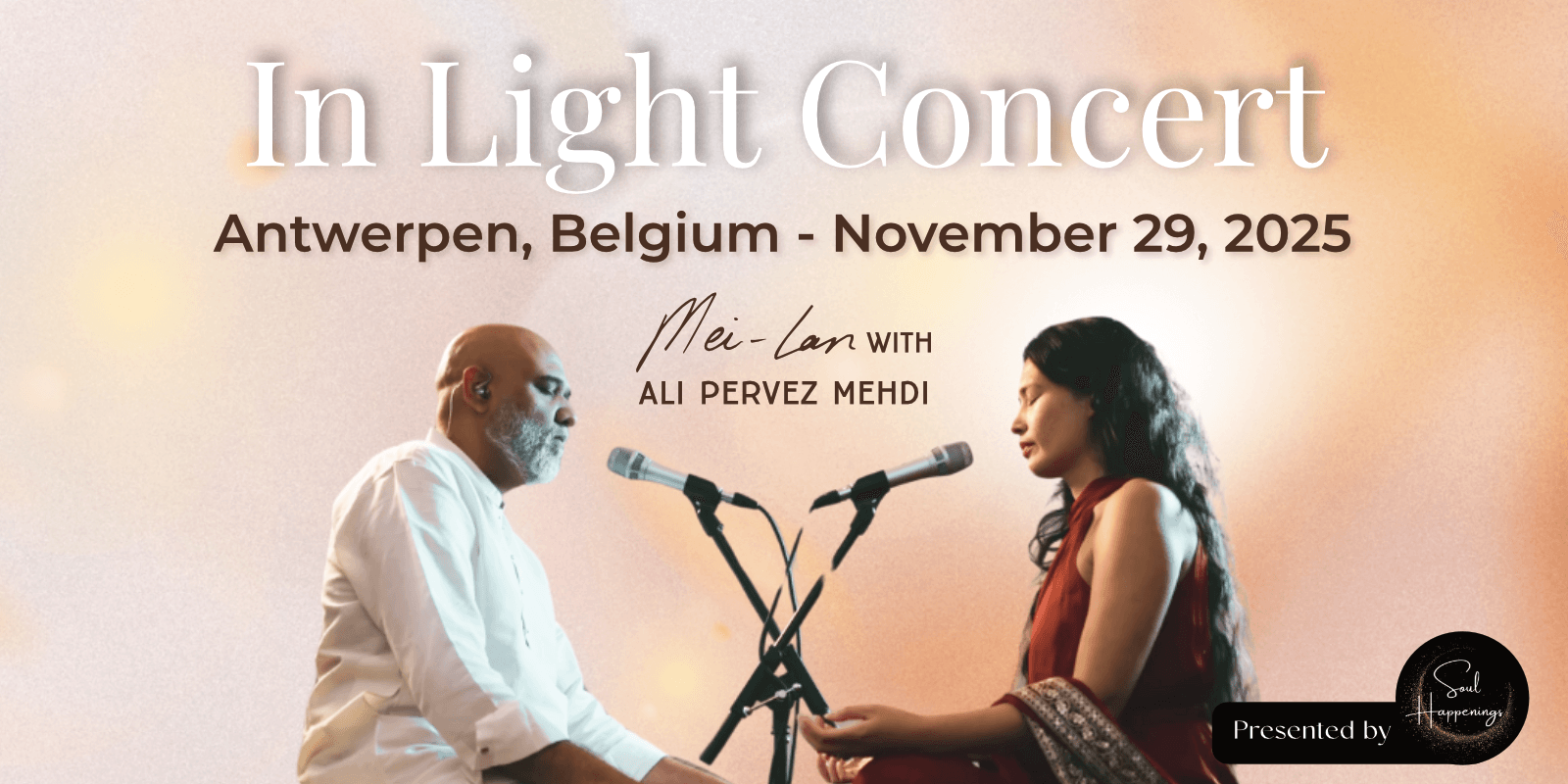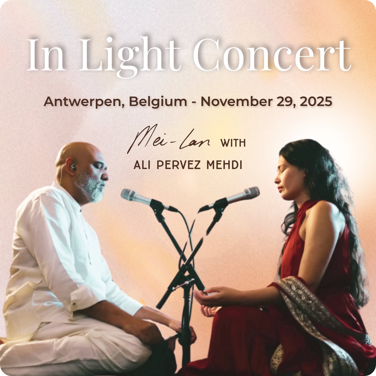 This is more than a concert. In Light is a musical journey—a sanctuary where healing frequencies and intentional soundscapes awaken the light within. Mei-lan’s etheric voice and soul-stirring tones merge with Ali Pervez Mehdi’s rich, ethnic sound to create a fusion of worlds—where East meets West, spirit meets sound, and music becomes medicine. Each note is an invitation to return to yourself.In a world that can feel uncertain and overwhelming, it’s easy to forget the steady flame that lives inside us. Through sound, stillness, and shared presence, we return to that inner light—beyond fear, and conditioning. Together, we’ll create a space of unity, healing, and deep connection. Come as you are, and allow the music to carry you—to uplift your heart, nourish your soul, and remind you of the beauty of being alive.